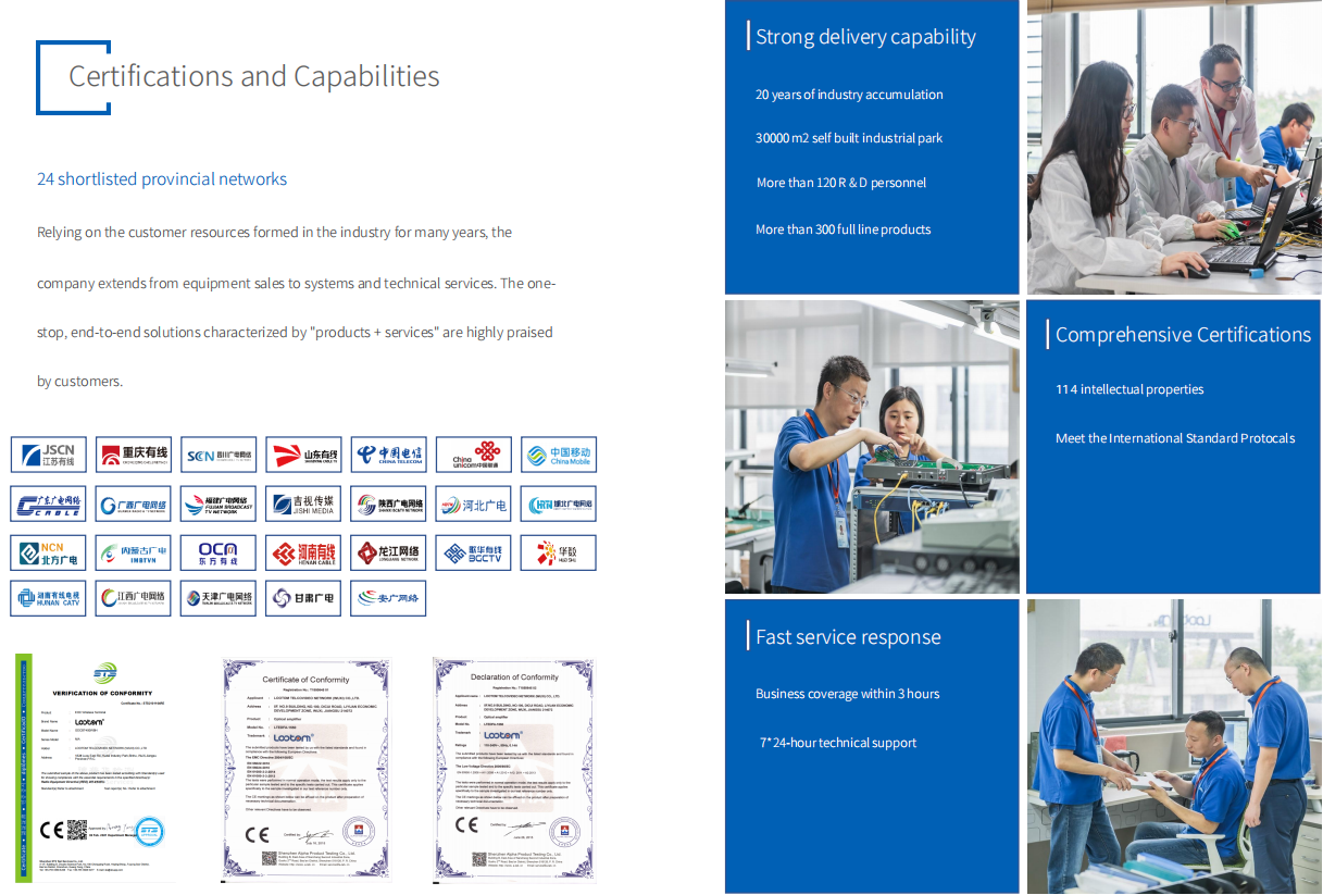 Lootom has always adhered to "professionalism and focus", driven by customer needs and advanced technology. Lootom has created FTTx,HFC, xPON+EOC and other network construction and network optimization solutions, and provided professional network planning and design, network optimization and transformation, network operation and maintenance monitoring, engineering construction and other services to help network operators achieve success.