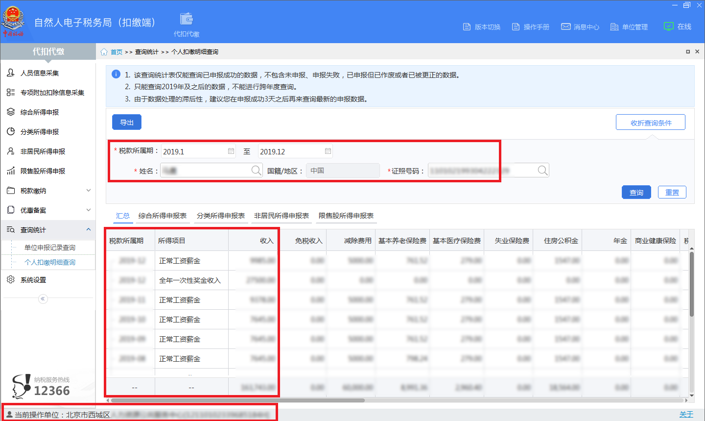 打印路径:申报单位登录“自然人税收管理系统扣缴客户端”全屏打印“个人扣缴查询明细”